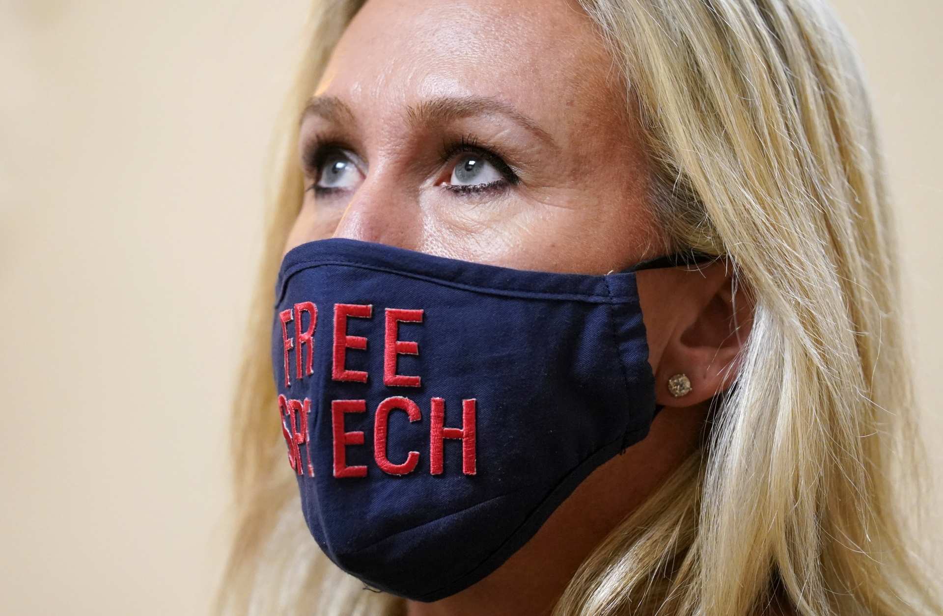 Marjorie taylor greene at a press conference outside the u.s.